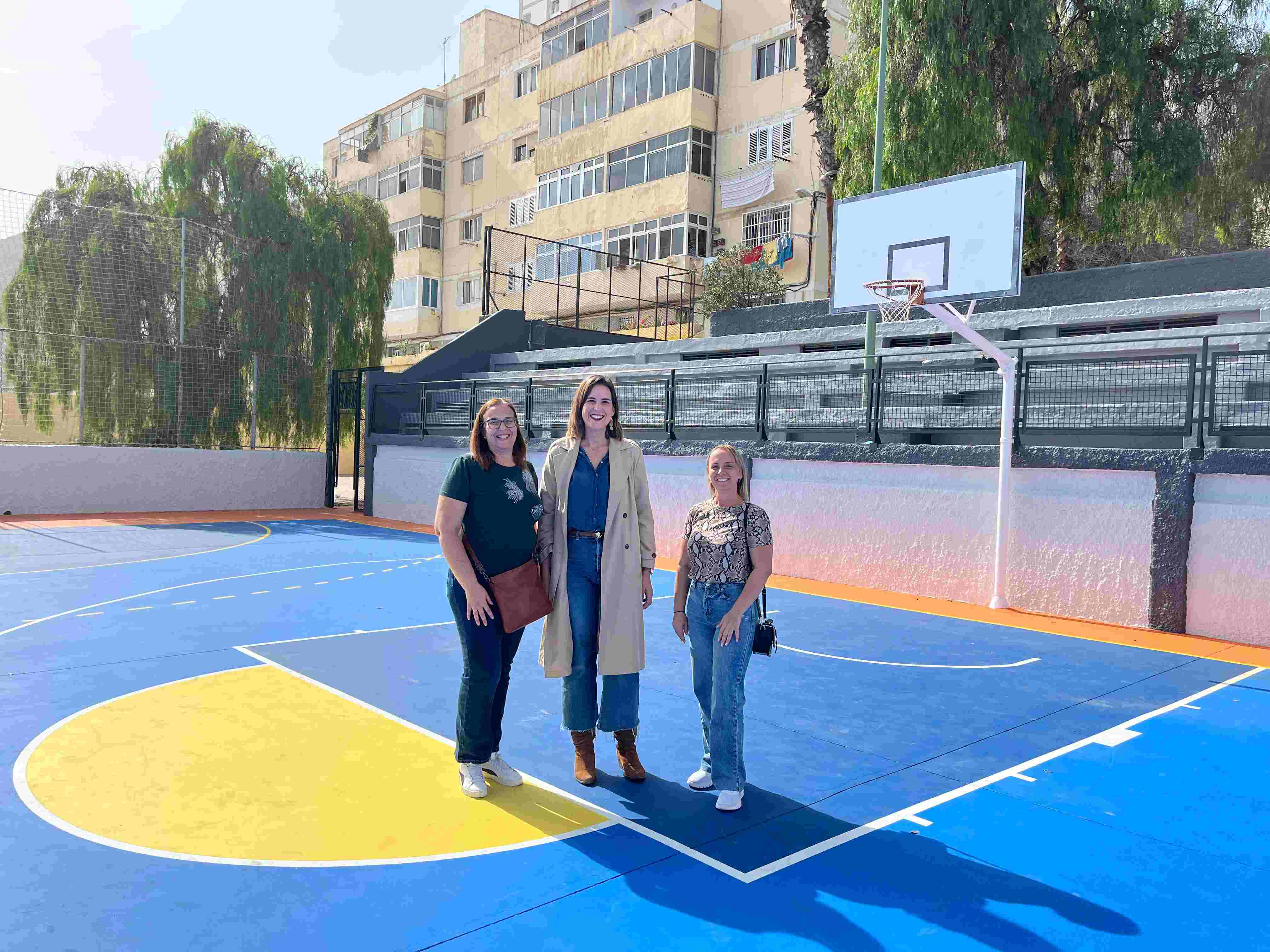 La intervención, con una inversión de 65.000 euros, mejora la seguridad, la estética y la funcionalidad de las dos canchas destinadas a baloncesto y fútbol sala.