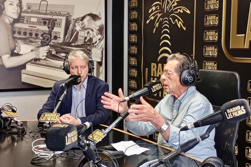 Eric Santana y Juan Acosta, durante su participación en el estudio 1 de Radio Las Palmas, en un momento en el que el presidente de ECOAGA expone su experiencia sobre el modelo de gestión del Parque Empresarial de Arinaga.