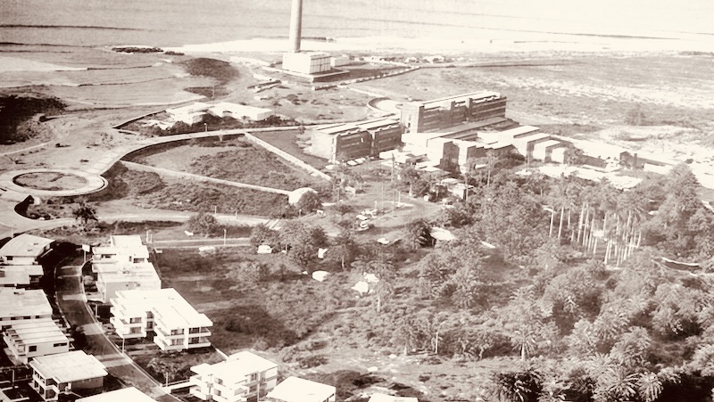 Vista aérea del Oasis de Maspalomas en sus primeros años de desarrollo, cuando las viviendas familiares convivían con los primeros proyectos turísticos.