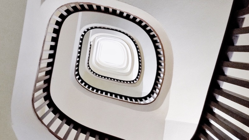 Una escalera infinita como metáfora visual de la estructura emocional que sostiene cada composición.