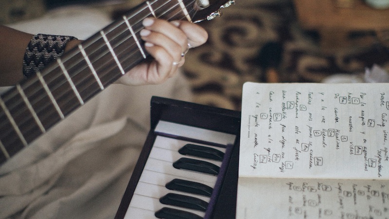 La guitarra y la partitura, origen de una trayectoria que comenzó en la tradición y evolucionó hacia la composición cinematográfica.