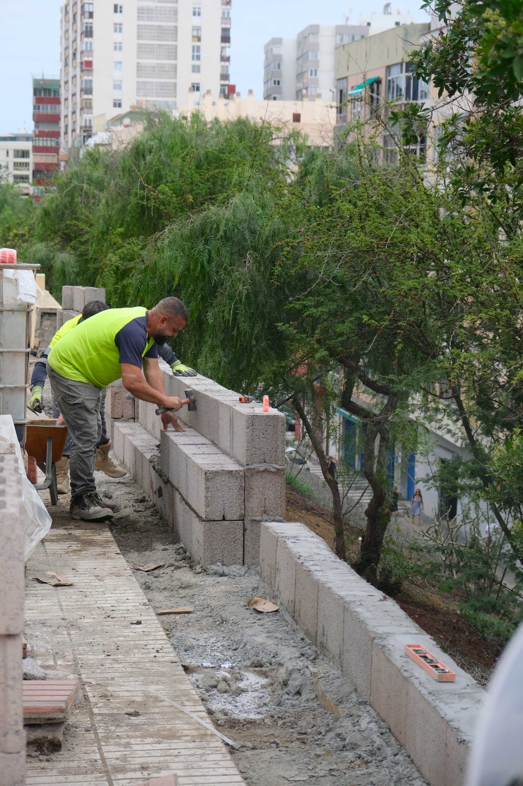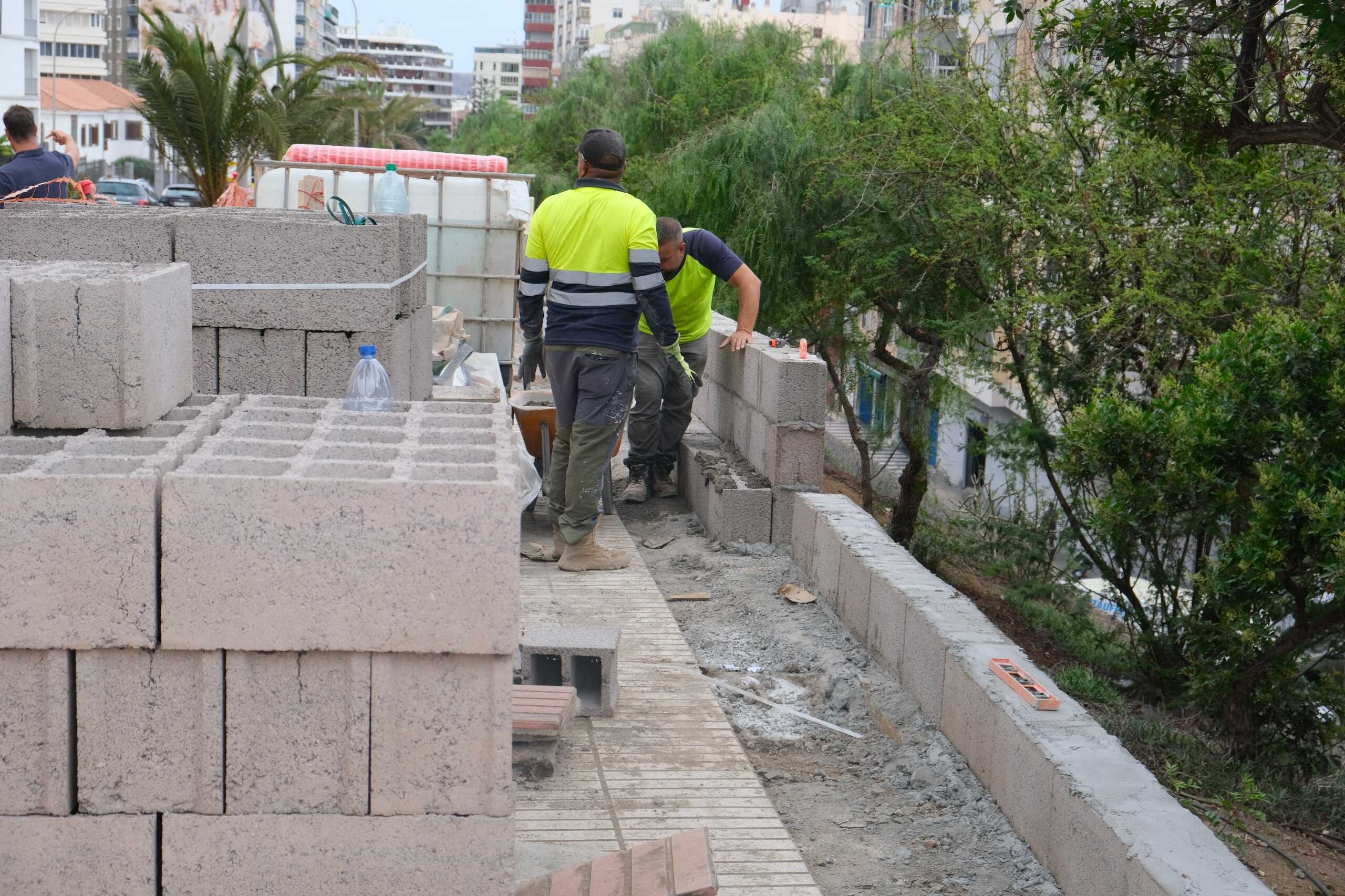 Los trabajos han comenzado con el saneado y pintado de 2.205 metros cuadrados de muros en tres tramos del lado naciente del paseo: entre la calle Ingeniero Bosch Sintes y Juan XXIII; entre la calle Azores y el Estadio Insular; y entre el Estadio Insular y la calle Barcelona.