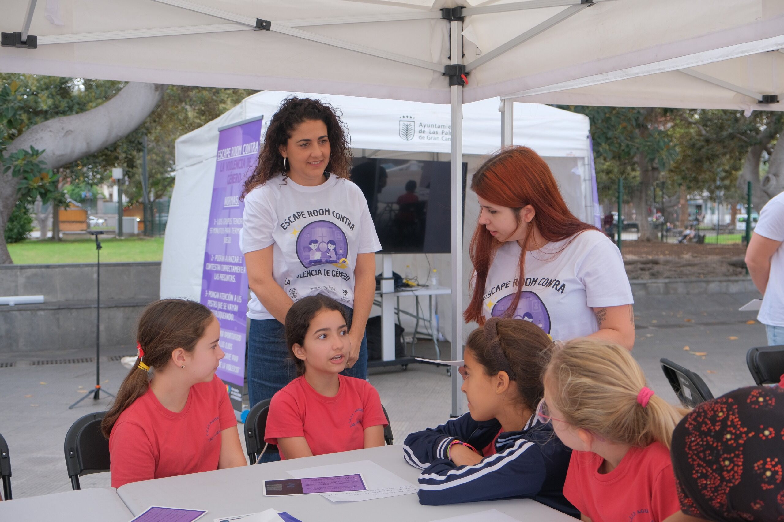 El Ayuntamiento de Las Palmas de Gran Canaria, a través de la Concejalía de Igualdad y Diversidad que dirige Betsaida González, ha celebrado este viernes en el parque San Telmo un 'escape room' educativo orientado a prevenir y visibilizar la violencia de género en las primeras relaciones afectivas adolescentes entre estudiantes de Primaria y Secundaria del municipio. La acción forma parte de la programación municipal prevista con motivo del 25 de noviembre, Día Internacional para la Eliminación de la Violencia contra las Mujeres, incluida en la campaña de este año bajo el lema 'Compromiso de Ciudad'.