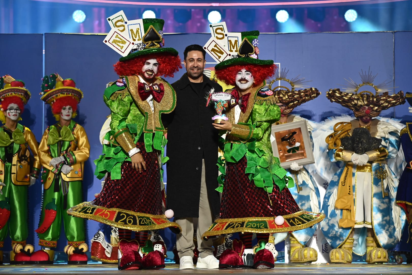 Y es que esta es una noche de pasiones y reconocimientos, homenajes y rendiciones ante los grupos que dedican su tiempo a sacar punta a la realidad y compartir la crítica con sátira y letras afiladas. En materia de compromiso y valor, es precisamente en el marco del Carnaval en el que se subraya el carácter de los grupos y se entrega un buen número de premios de distinto carácter, muchos de ellos de valor emocional. Así, al marcar el reloj las 03.00 horas, el palmarés desveló otros premios como el mencionado ‘Premio Tomás Pérez a la Mejor Letra’ o el ‘Carmelo “El Pariente”’, ambos de camino a Carrizal, junto al primero de interpretación.