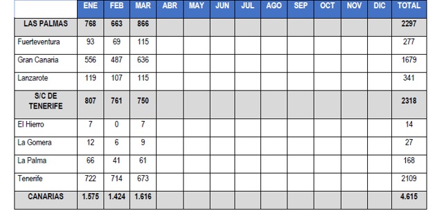 Los dispositivos para mujeres agredidas de las islas (DEMA) se activaron en 526 ocasiones y 102 mujeres con sus 51 hijas e hijos fueron acogidas de emergencia para protegerse de su maltratador. De forma paralela, se movilizaron 2.609 recursos policiales y 221 sanitarios.
