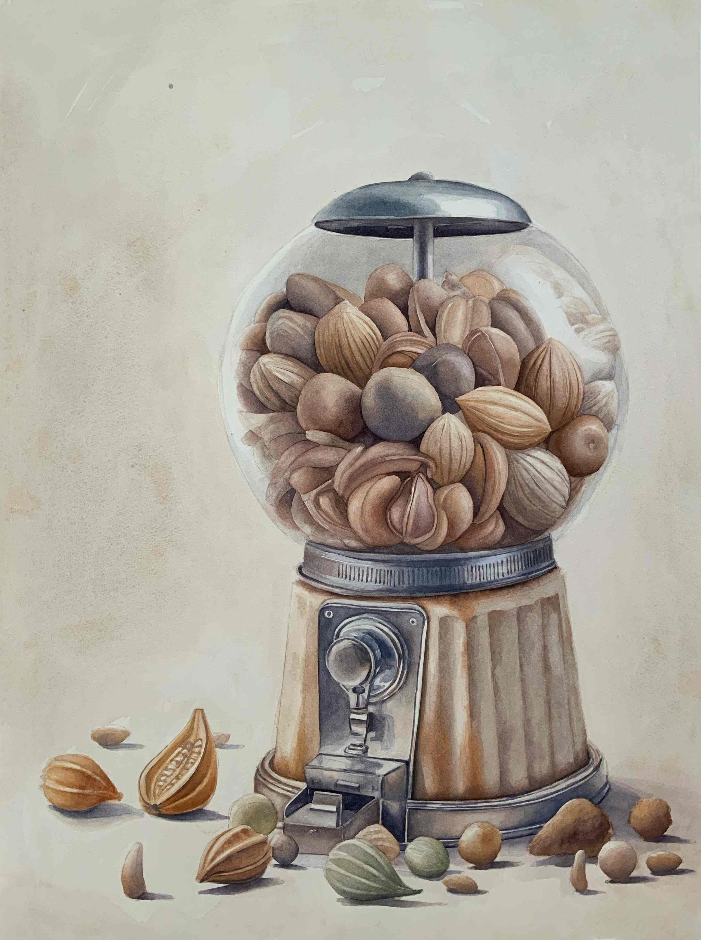 “Pienso esta exposición como un atlas de invenciones poéticas, un archivo de máquinas imposibles que hablan de creatividad, memoria, infancia y naturaleza en diálogo con la técnica. ‘Objetópolis’ es, al fin y al cabo, un relato sobre cómo imaginar futuro a partir de los restos del presente. Una ciudad levantada con fragmentos, habitada por niños inventores y soñadores, donde lo descartado se convierte en oportunidad y lo roto en posibilidad”, explica Irene León al referirse a su nueva entrega, que reúne óleos, acuarelas, dibujos y ensamblajes construidos a partir de objetos rescatados.