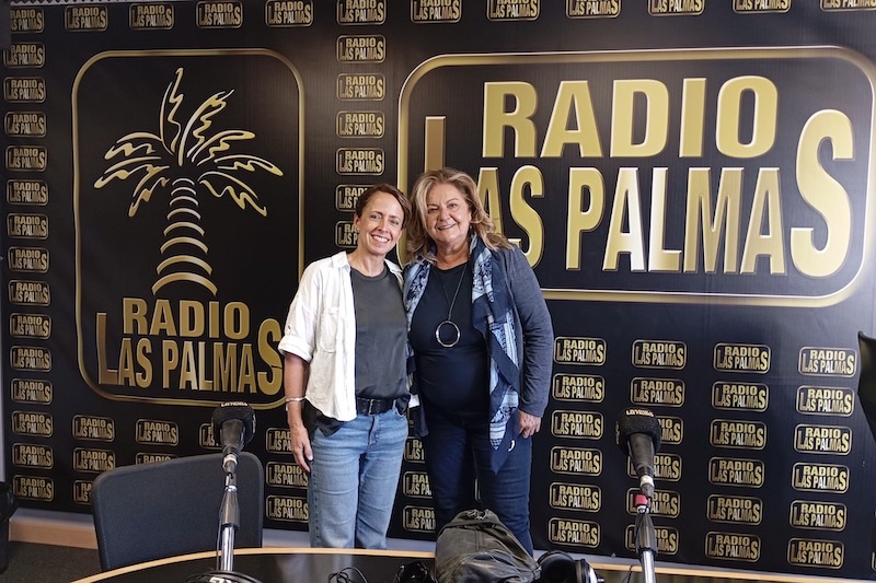 Beatriz J. Mariño junto a Dulce María Facundo tras la entrevista en Radio Las Palmas, en una imagen que refleja el encuentro tras la conversación sobre música y cultura.