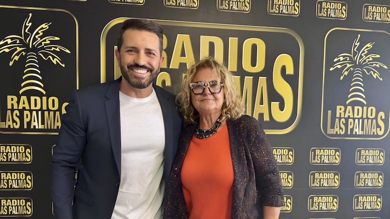 Jonathan Domínguez, viceconsejero de Comunicación del Gobierno de Canarias, junto a Dulce María Facundo en el fotocol de Radio Las Palmas tras la entrevista, donde abordó el lema «Islas iguales», las transferencias estatales y las políticas.