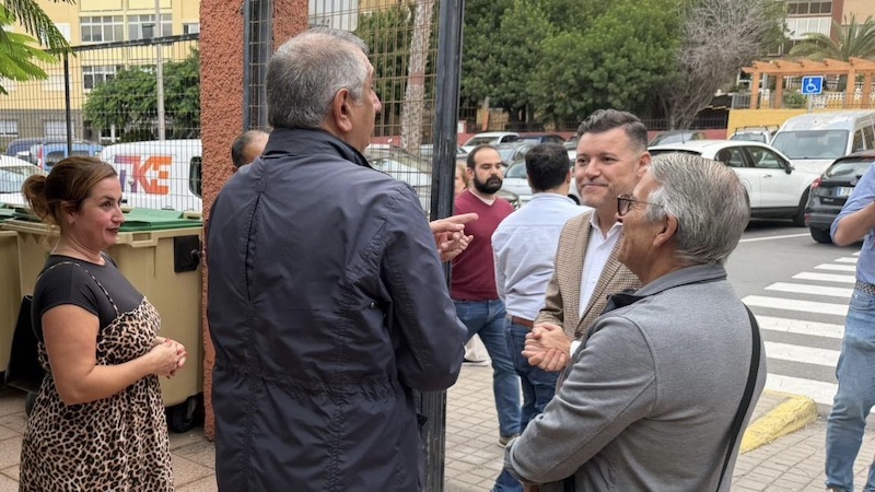 El líder de Primero Canarias aprovechó la ocasión para reunirse también con los representantes de la vecina Urbanización Reina Mercedes en relación al problema de las inundaciones recurrentes que llevan sufriendo desde hace décadas. En los últimos 25 años se han registrado hasta 15 grandes inundaciones, debido a la existencia de un colector de aguas pluviales situado en los jardines de la urbanización que acaba afectando cada vez que llueve a los garajes y locales comerciales. Teodoro Sosa mostró su disposición a ayudar a los vecinos. “Es una necesidad inmediata, no se puede permitir el riesgo permanente al que están expuestos los edificios y las personas que aquí residen”, afirmó. Juan Antonio Herrera, vocal de la Asociación de Vecinos Reina Mercedes expresó su esperanza en la solución propuesta por Teodoro Sosa. “Queremos que saquen el colector de los jardines y lo pasen por la carretera, que es donde tiene que ir”, explicó.