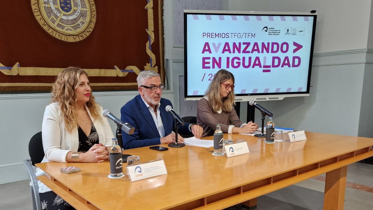 La consejera de Política Social, Accesibilidad, Igualdad y Diversidad del Cabildo de Gran Canaria, Isabel Mena, ha hecho entrega este lunes junto al rector de la Universidad de Las Palmas de Gran Canaria (ULPGC), Lluís Serra, de los premios del concurso 'Avanzando en Igualdad'. El concurso, financiado con 5.000 euros desde el Servicio de Igualdad de la Corporación insular bajo el Marco Estratégico por la Igualdad Gran Canaria Infinita, promueve la perspectiva de la igualdad de género en los Trabajos Fin de Grado (TFG) y Trabajos Fin de Máster (TFM) del estudiantado de la ULPGC.