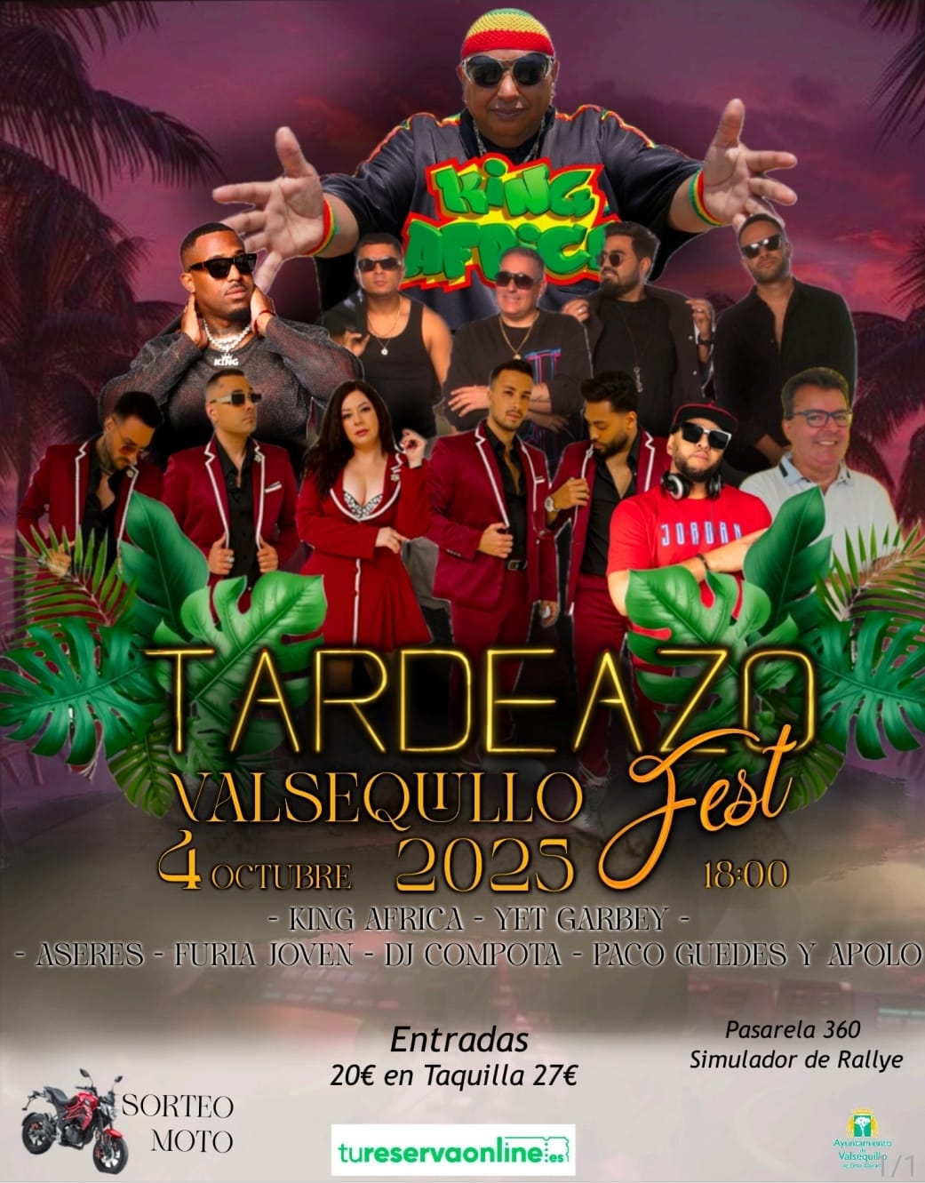 La fiesta cambia de ubicación y se desarrollará en el párking municipal de Valsequillo Casco, ofreciendo una alternativa de ocio seguro y vibrante para vecinos y visitantes. El "Tardeazo Fest" contará con un cartel de lujo para garantizar la diversión. La tarde estará amenizada por King África, los Aseres, Yet Garbey, Apolo y Paco Guedes, Dj JJ Compota y las orquesta Furia Joven. Una tarde que comenzará con Laslatinsisters, quienes prometen poner a bailar a todo el público presente a ritmo de bachata, salsa y chachachá.