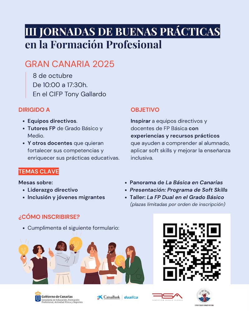La Otra Mañana de Radio Las Palmas, dirigida por Asunción Benítez, conversó con Nayra Moreno, gerente de la Fundación Sergio Alonso, sobre la tercera edición del Programa de Entrenamiento en Soft Skills para Docentes de Formación Profesional de Grado Básico. La iniciativa, que arranca el miércoles 8 de octubre de 2025, busca dotar al profesorado de competencias personales y sociales con el fin de motivar a jóvenes en situación de vulnerabilidad y frenar el abandono escolar, que en Canarias supera el 45 % en este nivel.
