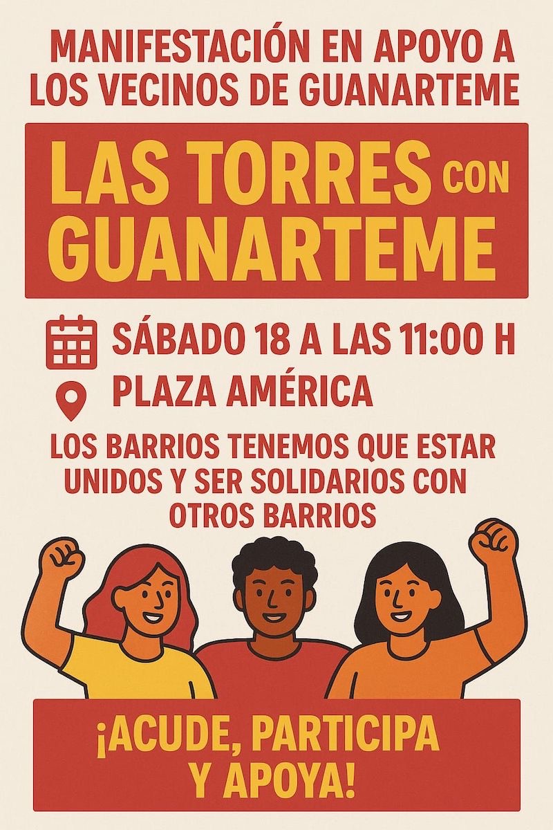 El barrio de Guanarteme se prepara para una nueva movilización ciudadana. La Asociación Guanarteme se Mueve ha convocado una protesta este sábado 18 de octubre bajo lemas como «Vuelven los buitres a Guanarteme» o «Aquí no hay quien viva». La acción pretende visibilizar el malestar vecinal ante la construcción masiva de edificios de más de diez plantas y la falta de planificación municipal.