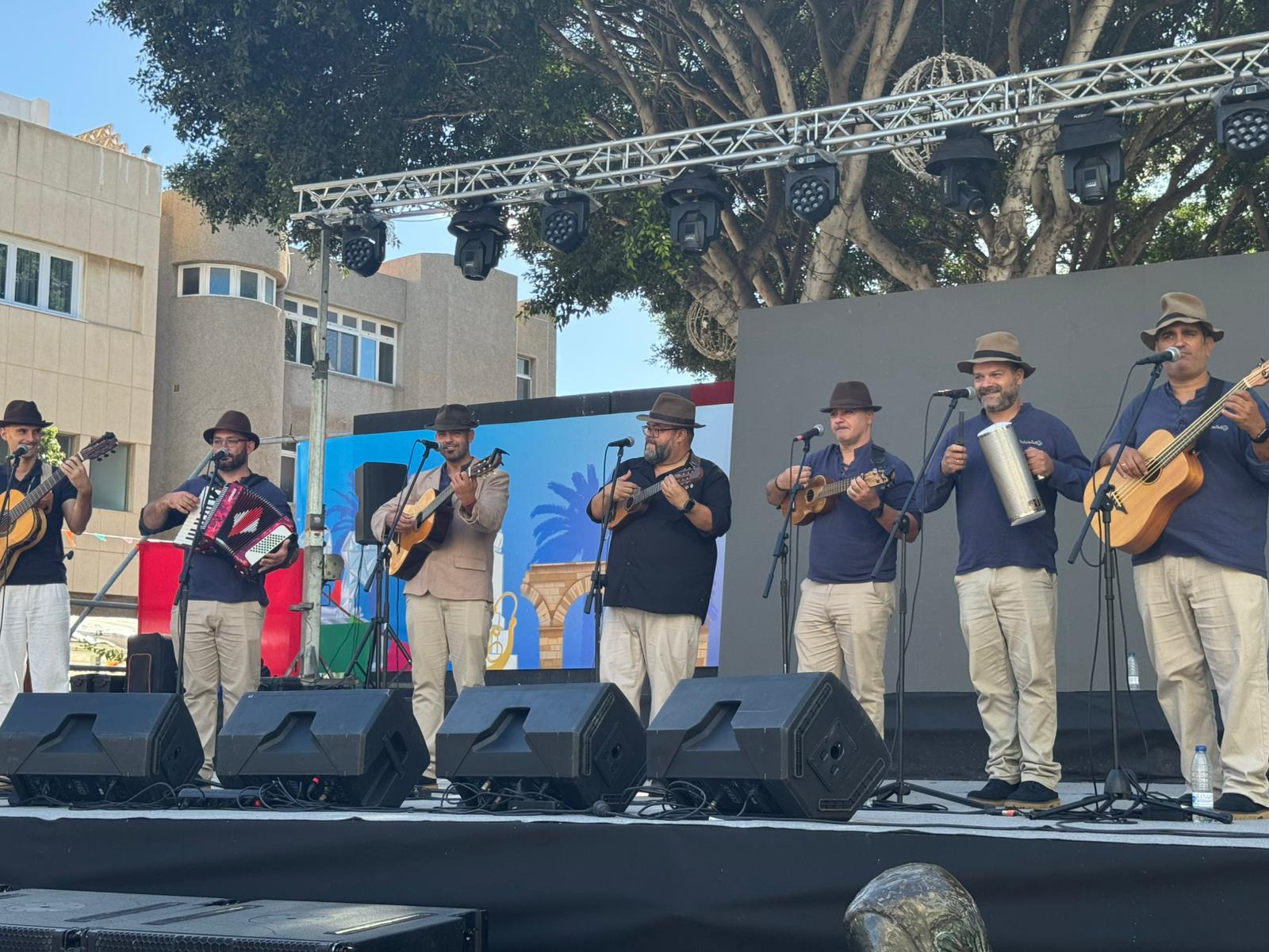 El grupo Mariachis Peleones puso la nota mexicana en la plaza de San Gregorio a mediodía, creando un ambiente festivo que acompañó la afluencia constante de público en toda la zona comercial y el casco histórico.
