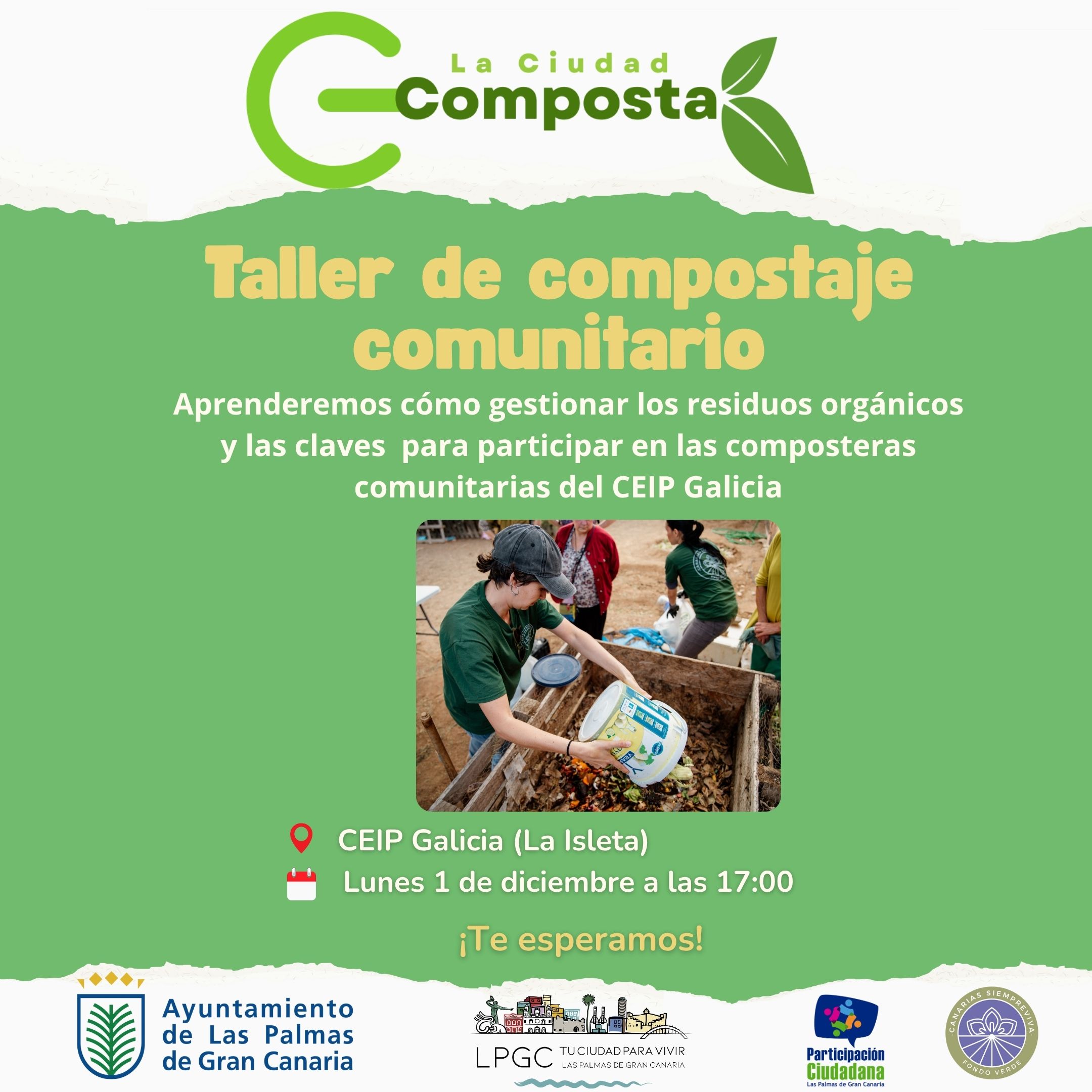 La siguiente cita tendrá lugar el lunes 1 de diciembre, a las 17:00 horas, en el CEIP Galicia, donde se ofrecerá un Taller de Compostaje Comunitario dirigido a familias y residentes del entorno. Este encuentro permitirá conocer de forma directa el funcionamiento de la compostera del centro y el papel que desempeña la ciudadanía en la consolidación del proyecto en La Isleta.