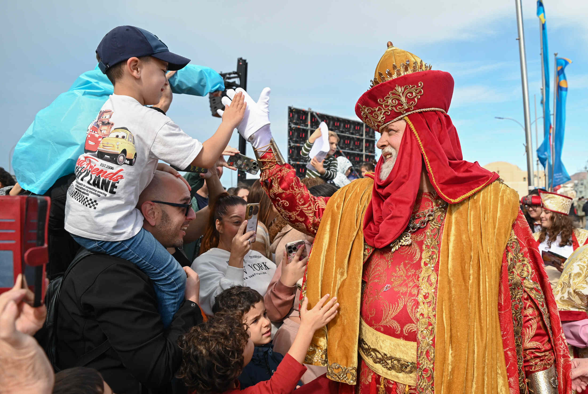 El acto, que ha contado con la presencia del concejal de Cultura, Josué Íñiguez; el contralmirante comandante del Mando Naval de Canarias, Santiago de Colsa Trueba; la presidenta de la Autoridad Portuaria de Las Palmas, Beatriz Calzada; y el presidente de la Casa Galicia de Las Palmas, Albino Aneiros, ha sido el preludio de una jornada muy especial en la que los tres Magos de Oriente recorrieron las calles de la capital en la Gran Cabalgata.